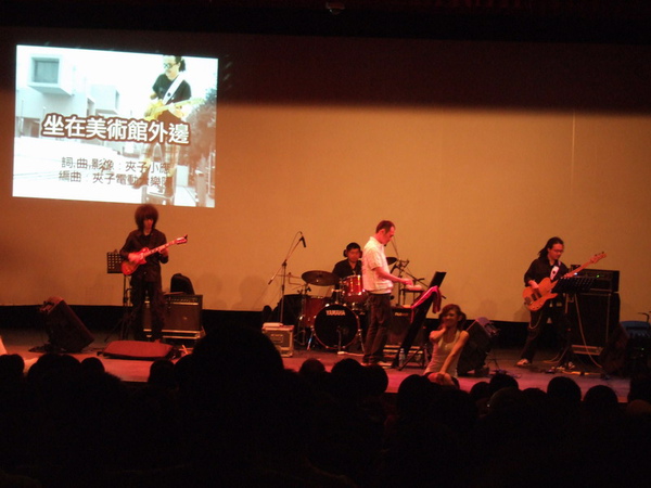 幾乎灰白一片的舞台設計、簡陋的燈光效果、自行架設的投影機所播放出的自製 mv (其實也是俗夠有力,非常有創意)... 儘管如此,夾子還是帶給我們一個半小時的歡樂時光。歌曲一首接一首,之間穿插的是小應的妙語如珠或是對音樂、對社會、對生活的體悟。聽小應說話,可以感受到在中研院這等地方演出讓他特別的謹慎、收斂;但聽他唱歌,卻又是那麼的自在,不管歌詞是要表達什麼,都一樣盡情地宣洩出來,是個非常誠懇且忠於自己的音樂人。還好,這天大家也都很捧場,讓這難得的演出算是完美的結束,真的很開心~