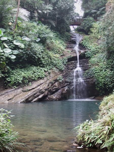 小小的山凹底處有個透涼的水潭,後方的瀑布沿著石壁一級一級的落下,水量不豐,但小而巧,小而美。橫越水潭,山凹的另一邊還有個荒廢的步道可以繞到瀑布的上頭,而步道的盡頭則是某個古圳道的開口,裡頭黑黝黝的帶給人一種神秘感 :)
